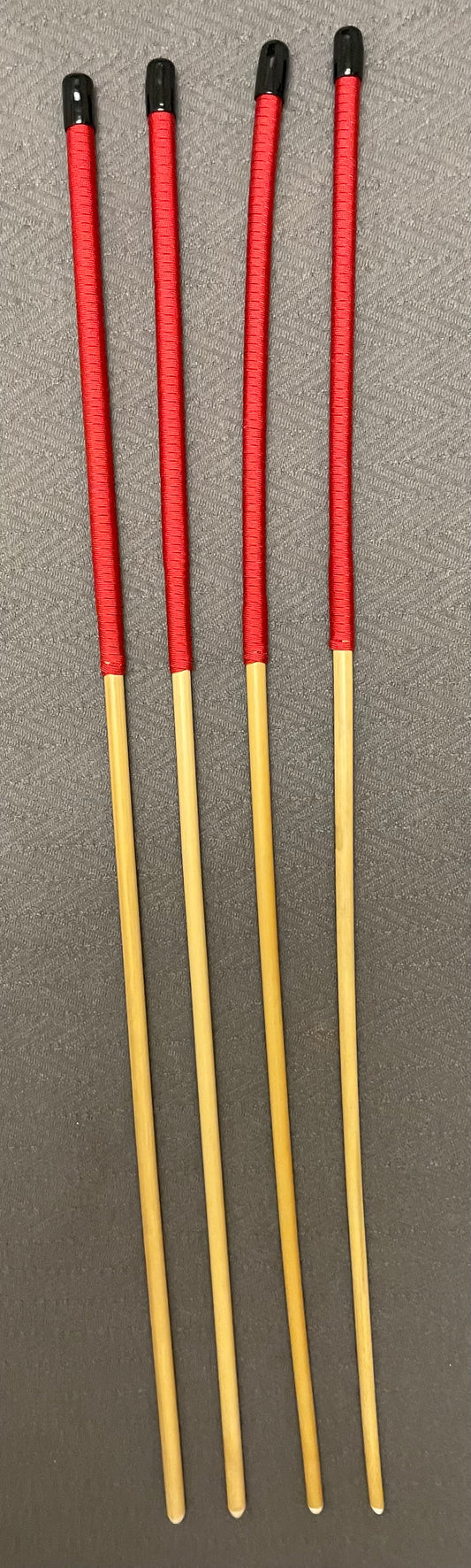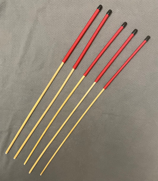 Knotless Dragon Canes / No Knot Dragon Canes / School Canes / BDSM Canes Set of 4 - 83 or 90 cms Length & 9 - 9.5/10 - 10.5/11 - 11.5/12 - 12.5 mm Diameters - RED Kangaroo Leather Handles