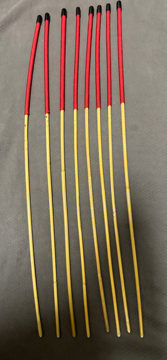 The Whippy Dozen - Set of 12 Whippy/Stingy Classic Dragon Canes / Smoked Dragon Canes / BDSM Rattan Canes / School Canes - Red Paracord Handles