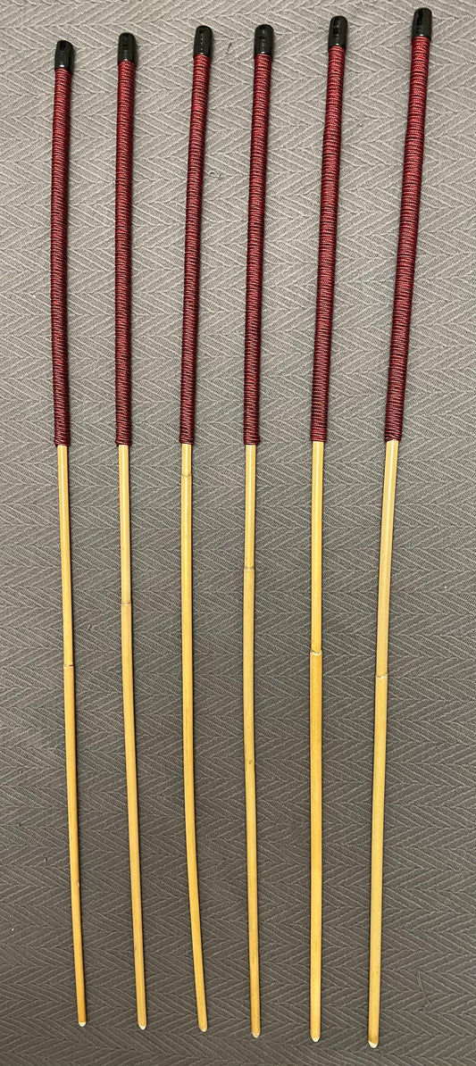The Stinger Six Set of 6 Whippy Thin Swishy Dragon Canes - 95 cms L & 6.5-7/7-7.5/7.5-8/8-8.5/8.5-9/9-9.5 mm D - BURGUNDY 14” Paracord Handles