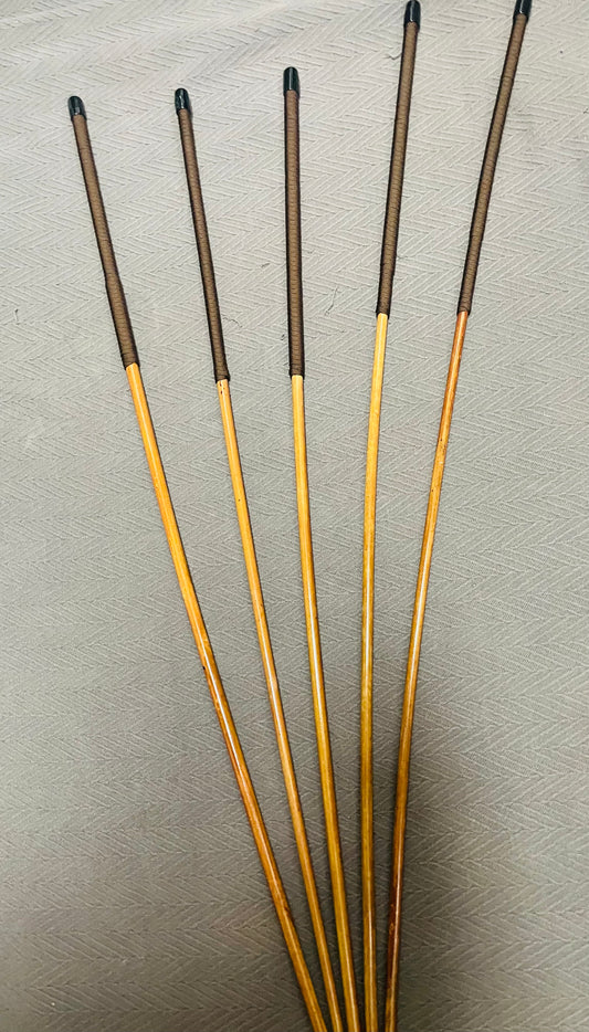 Knotless Dragon Canes / No Knot Dragon Canes / BDSM Canes Set of 4 - 100 cms L & 9-9.5/10-10.5/11-11.5/12-12.5 mm D - 12” BRANDY Kangaroo Leather Handles - VERY RARE ONE OF A KIND SET