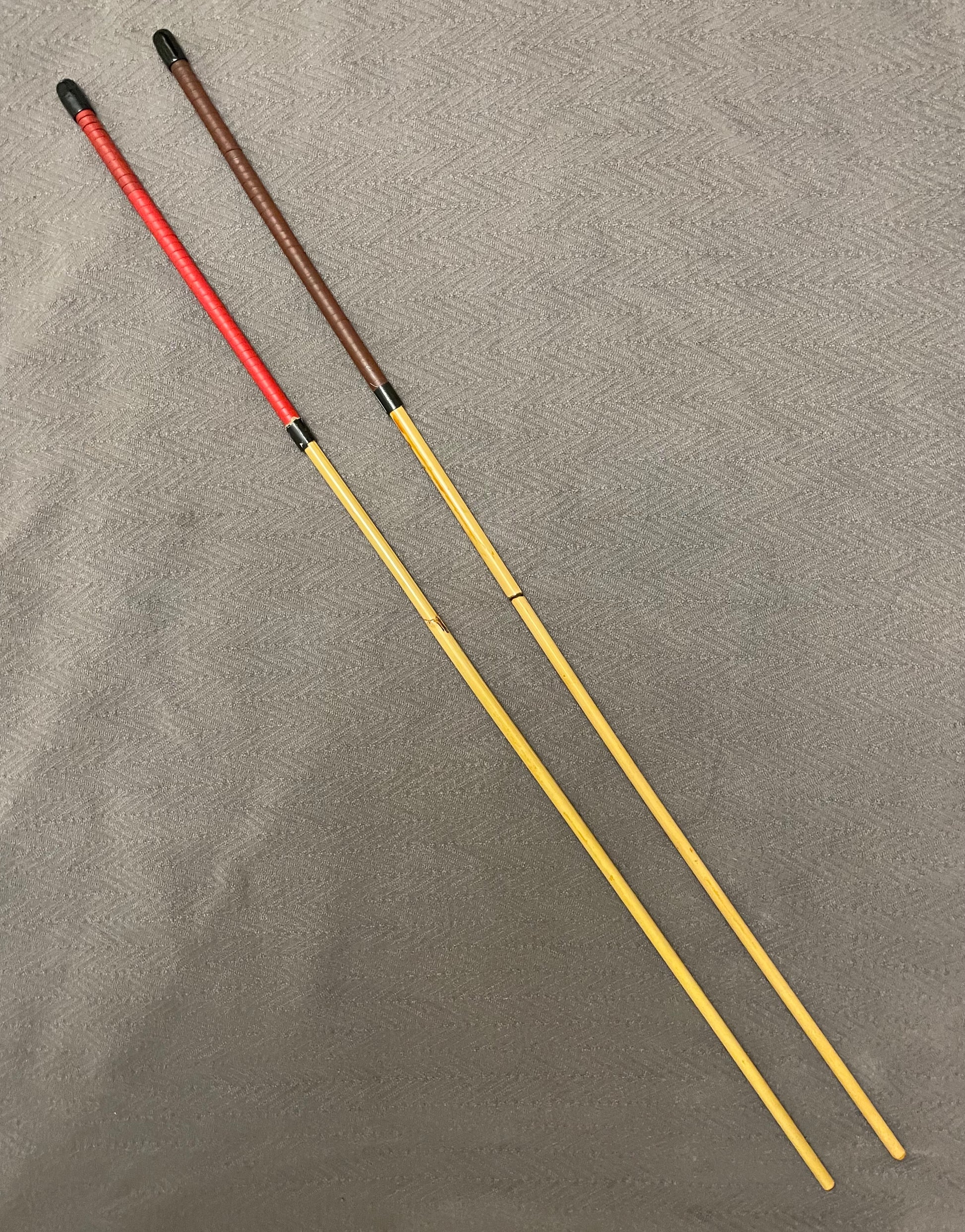 We augment the already finished dragon rattan by soaking in linseed oil and give it a nice glossy sheen with high grade poly gel and wrap them in leather handles (top grain or kangaroo leather). These will be our creme de la creme dragon canes and the finest rattan punishment cane you could buy and carry a premium over the comparable Superior Dragon Cane. Quite simply put, these are the best rattan punishment canes money can buy.